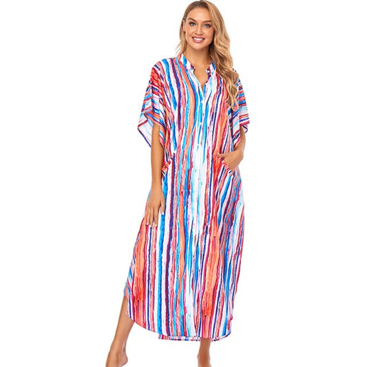 Causal Button Front Summer Beach Dress Tunic Women Plus Size Clothes Maxi Dresses